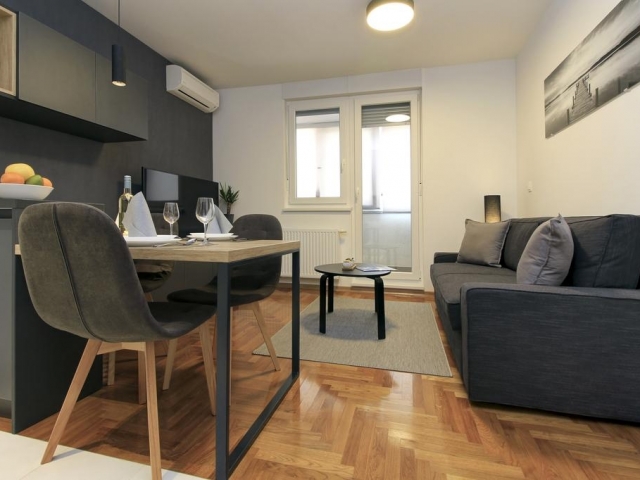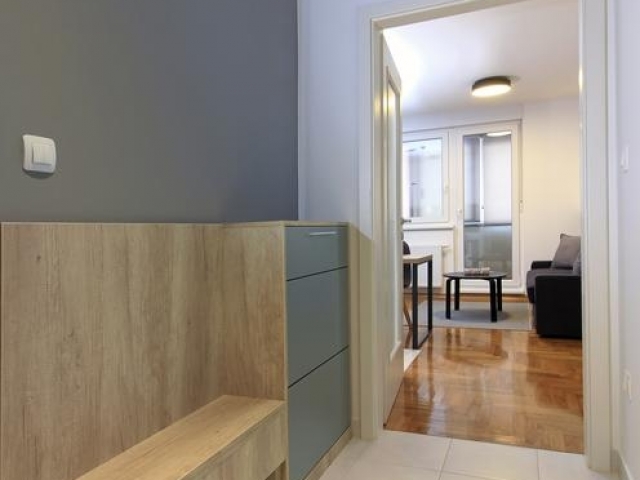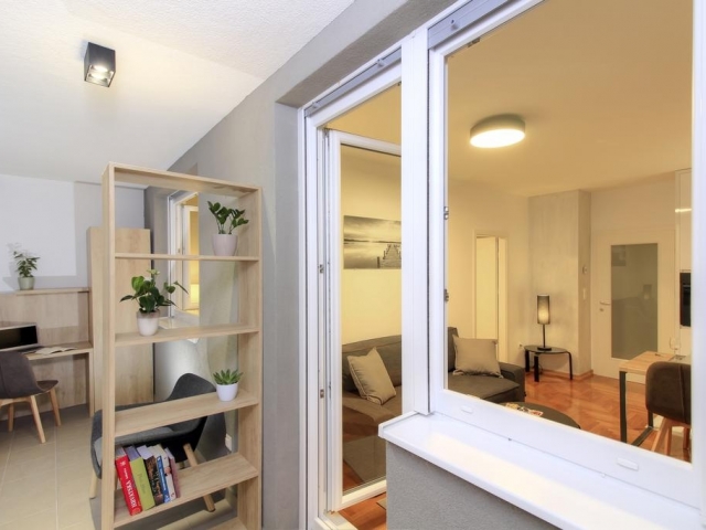 Iznajmljuje se novo uređeni dvosobni stan u viskom prizemlju Pionirove novogradnje iz 2019. Stan se sastoji od hodnika, dnevne sobe, kuhinje s prostorom za blagovanje, spavaće sobe i kupaonice. Loggia je adaptacijom zatvorena kliznim staklenim stijenkama te je dobiven dodatni stambeni prostor koji može služiti kao radna soba koja je opremljena pisaćim stolom i ormarićem. Stanu pripada garažno parkirno mjesto na etaži -1. Prvi najam!