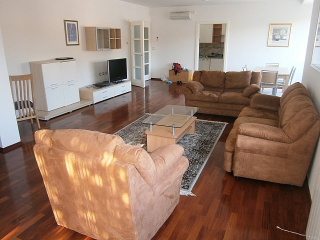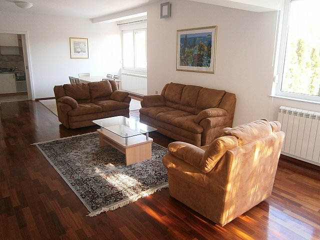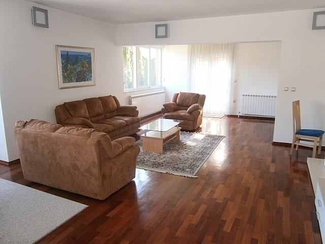Četverosobni stan površine 165m2 u prizemlju urbane ville u mirnom i rezidencijalnom sjevernom dijelu grada. Stan je potpuno namješten i opremljen.