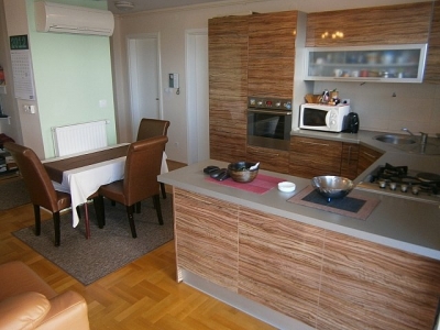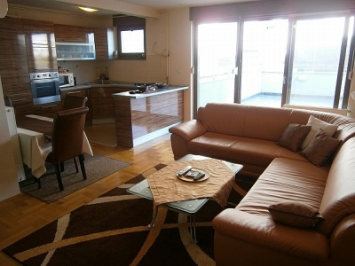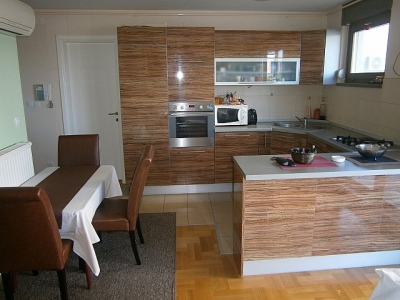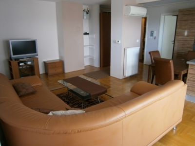 Three bedroom flat for rent located on the 2nd floor of a newer residential building (Zvonimir centre). The flat is completely furnished and equipped with all necessary appliances. The flat consists of a comfortable living room, kitchen with dining section, three bedrooms, a bathroom and a large terrace of 26m2. The flat has aircon, video surveillance, video intercom, ADSL. In the price included is a parking space in the underground garage.
