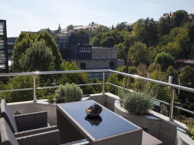 Two-storey penthouse on an attractive location right next to the Kaptol Center. On the lower level there is an entrance hall, a kitchen, a dining room with a living room in the whole, from which there is a terrace, 2 bedrooms (one with a double bed, the other with a single bed) each with its own bathroom and a guest toilet. On the upper floor is a working or guest room and a terrace with a beautiful view of the city center. There are 2 parking spaces.Two-storey penthouse on an attractive location right next to the Kaptol Center. On the lower level there is an entrance hall, a kitchen, a dining room with a living room in the whole, from which there is a terrace, 2 bedrooms (one with a double bed, the other with a single bed) each with its own bathroom and a guest toilet. On the upper floor is a working or guest room and a terrace with a beautiful view of the city center. There are 2 parking spaces.