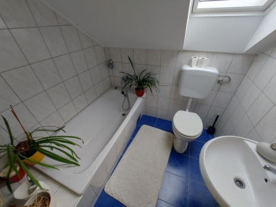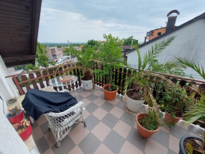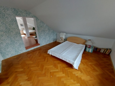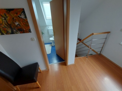 On the upper floor there are 3 bedrooms, a spacious balcony with a beautiful view and a second bathroom with a bathtub.