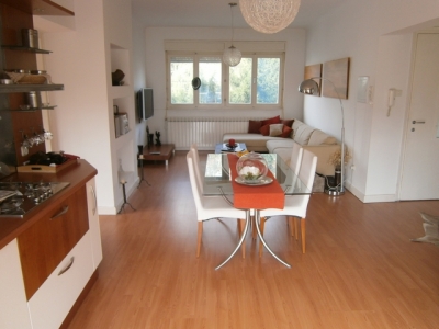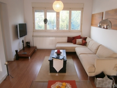 Very attractive 2 bedroom flat for rent 70m2 in size located on the first floor of a smaller residential building on Šalata. The flat is completely furnished and equipped with all necessary appliances. It consists of a small entrance hall, a living and dining room, fully equipped kitchen, 2 bedrooms, one bathroom and two dens. The flat has a private garden and a private parking space.