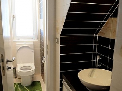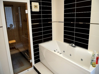 It consists of a living room with fireplace, dining room, kitchen, guest toilet, 2 bedrooms, a bathroom equipped with a sauna for two persons and a laundry room. The apartment is fully air conditioned and is equipped with video surveillance, security doors, ADSL line and satellite TV. The apartment also has a garage with remote door opening.