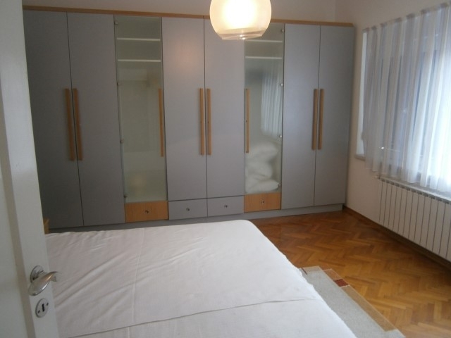 Comfortable and fully furnished two bedroom apartment of 120m2 on the first and second floor. The first floor has an entrance hall, spacious dining room, living room, master bedroom, bath, kitchen with a small dining area, laundry room, storage room and guest toilet with shower. On the second floor of the apartment there is a 30 m2 studio with bedroom and bathroom (shower) and a large rooftop terrace of 70m2 with an awning and a barbecue.