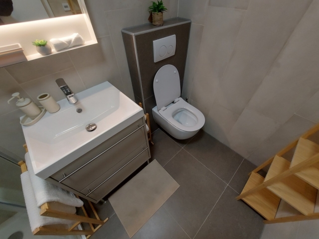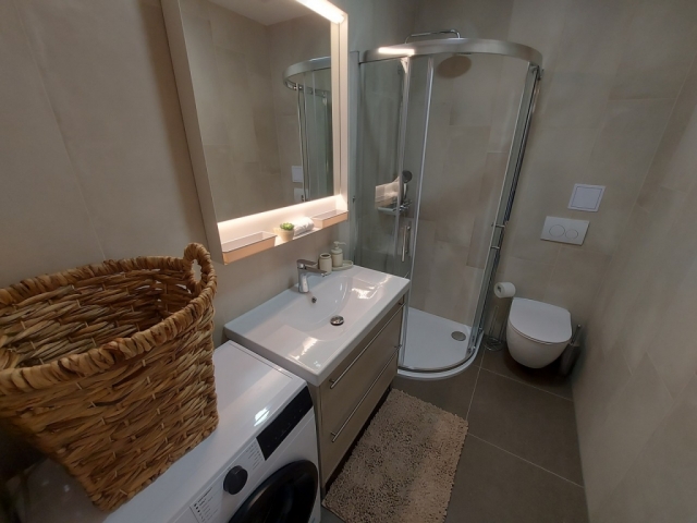 The apartment has three new air conditioners installed (living room, bedroom 1, bedroom/study 2). Underfloor heating has been implemented throughout the apartment and all rooms are equipped with their own thermostat, which allows for separate temperature regulation in all rooms.