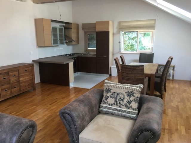 Comfortable, spacious and fully equipped two bedroom apartment in a quiet neighborhood near Zelengaj forest park. It is located on the attic of a smaller building which was completely renovated in 2013. The apartment has been very little used since then and all furniture and appliances are like new!