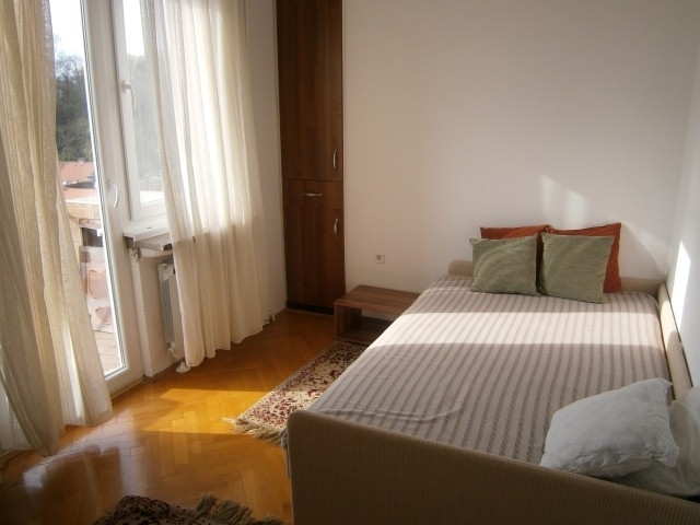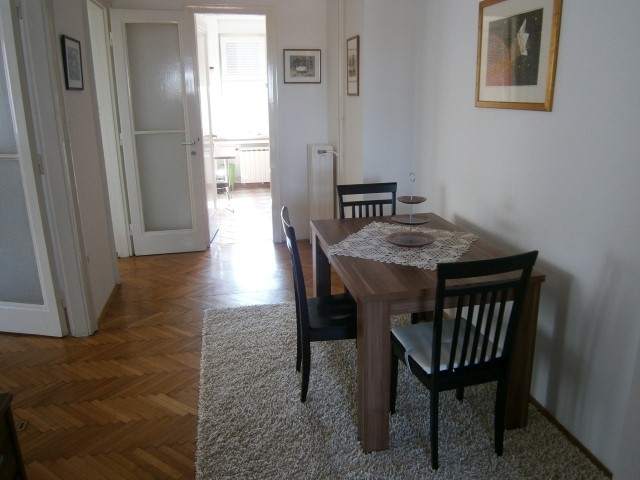 Comfortable 3 room apartment (89m2) for rent on the 7th floor of a well maintained residential building in the city center. It consists of an entrance hall, spacious living room and separate dining room, two bedrooms of which one room has a balcony while the 2nd bedroom is equipped with built-in wardrobes, fully equipped kitchen, bathroom, separate toilet and 2 storage rooms. You can park in a public parking lot near the building (1.zone) or in a public parking garage in Ilica / Tuškanac. Tram next to the building, the main square and the British square are just a few minutes walk away.
