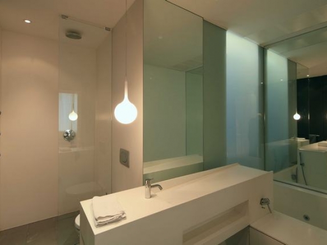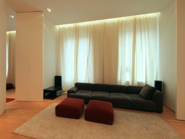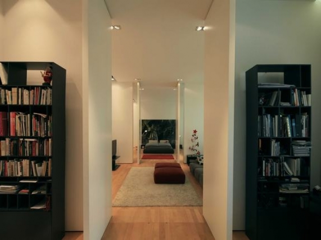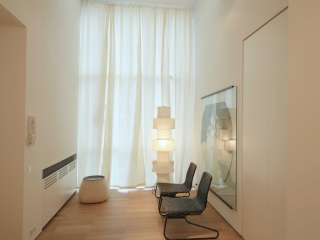 This luxurious flat consists of a entrance hall, spacious living room, centrally positioned dining room and kitchen which through a glass wall have a view of the garden, 3 bedrooms with lots of walk-in-closets and 2 bathrooms. Three rooms positioned to the south of the flat completely merge into one space through a revolving door. The height of the ceilings is 430cm.