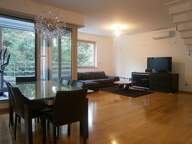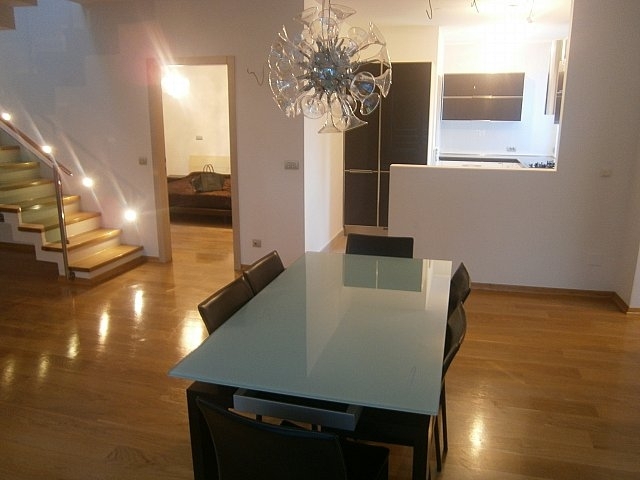Duplex 5-room apartment of 146m2. The apartment and the furniture are brand new and so far have not been used. The apartment is situated on the first and second floor in new urban villa (2011) with a total of 4 apartments. Location of the villa is in a quiet sidestreet close to international schools, Kvaternik Square and the city center.