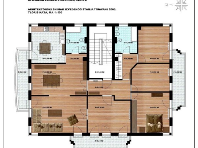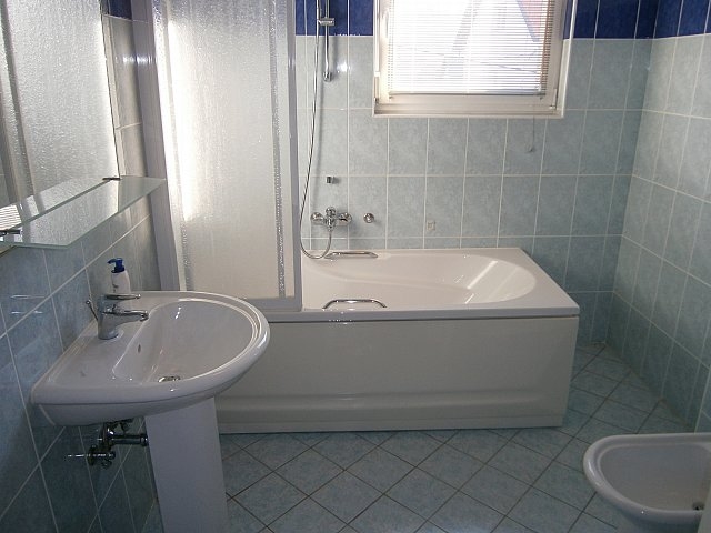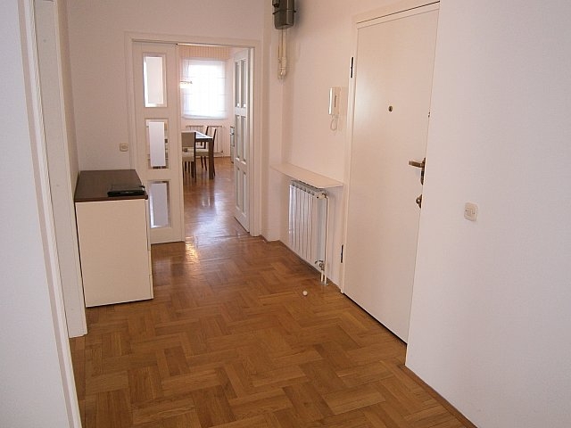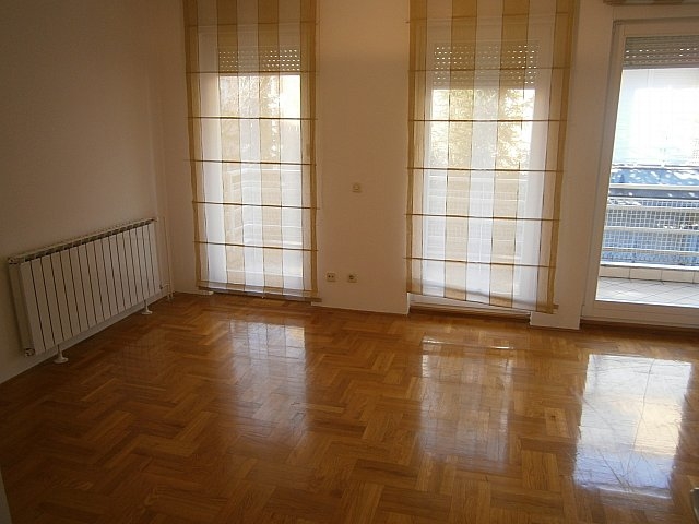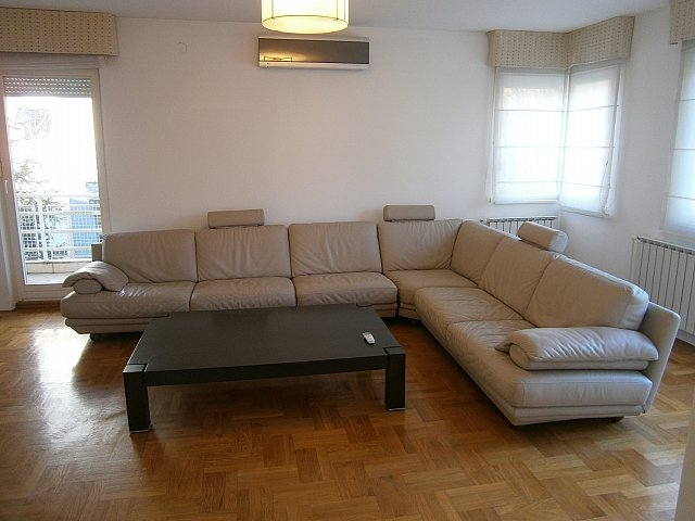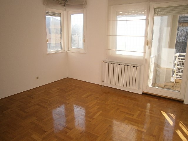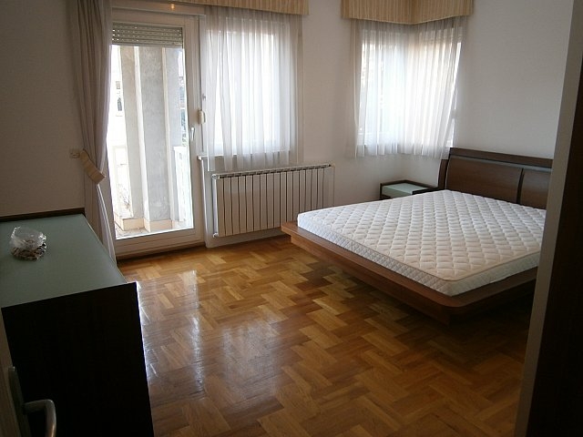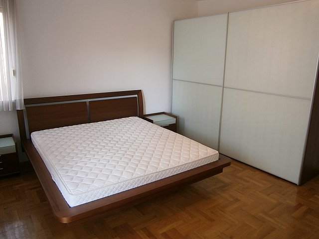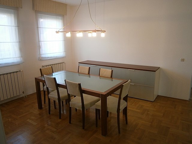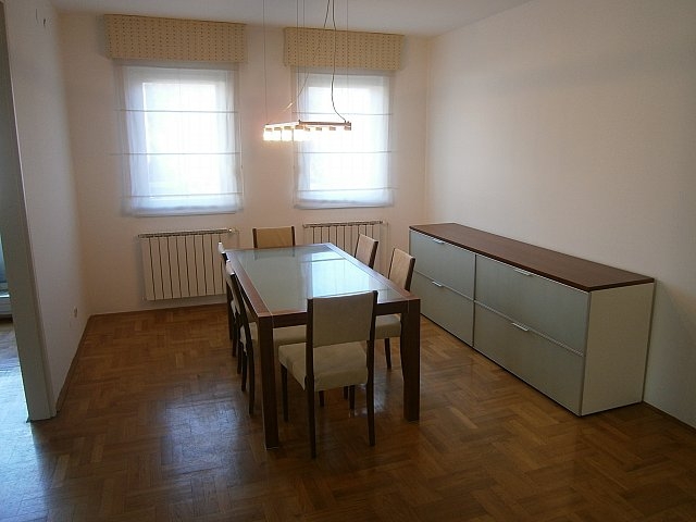Three bedroom room apartment of 170m2 on the first floor of an urban villa in Mlinovi. The building is set back from the main road approx. 50m. The apartment lacks furnishings for two bedrooms, which the owner will obtain according to the future tenants needs.