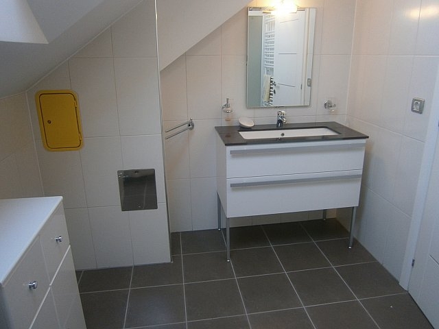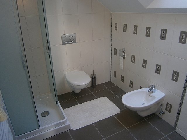 Na gornjoj etaži (potkrovlje) nalazi se dnevni boravak sa kuhinjom i blagovaonicom, dvije spavaće sobe, kupaonica sa tuš kabinom, odvojeni toalet i terasa južne orijentacije.