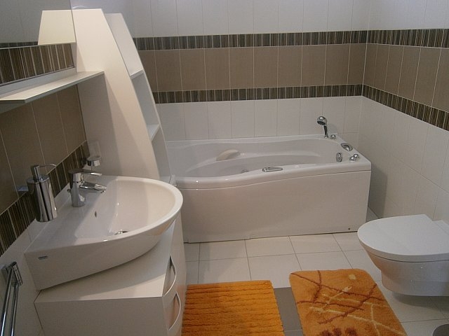 Na donjoj etaži nalazi se veliki open-space prostor koji objedinjuje dnevni boravak, kuhinju, blagovaonicu i terasu s pogledom na grad i zelenilo, dvije spavaće sobe, dvije kupaonice sa jacuzzi kadom i turskom kupelji te smočnica i prostor sa perilicom rublja.