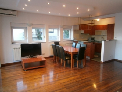 Četverosobni stan površine 117m2 u visokom prizemlju urbane vile u ulici Vale Vouka. Stan je sa dvorišne strane u prizemlju, sa ulazne strane u zgradi u visini 1 kata. Sastoji se od od halla, gostinjskog wc-a, dnevnog boravka sa blagavaonom i kuhinjom, 3 spavaće sobe, 2 kupaonice i prostrane terase od 17m2 i vrt od 35m2 sa roštiljem, te pripadajuće garažno parking mjesto.