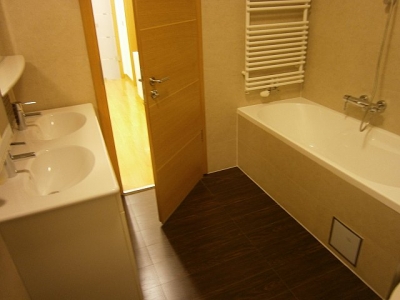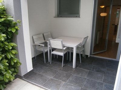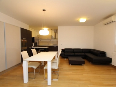 Četverosoban stan površine 130m2 s malim vrtom površine 30m2. Stan se sastoji od ulaznog halla, dnevnog boravka s blagovaonom, kuhinje, ostave, 3 spavaće sobe, 2 kupaone, gostinjskog toaleta, vešeraja i male terase s vrtom.